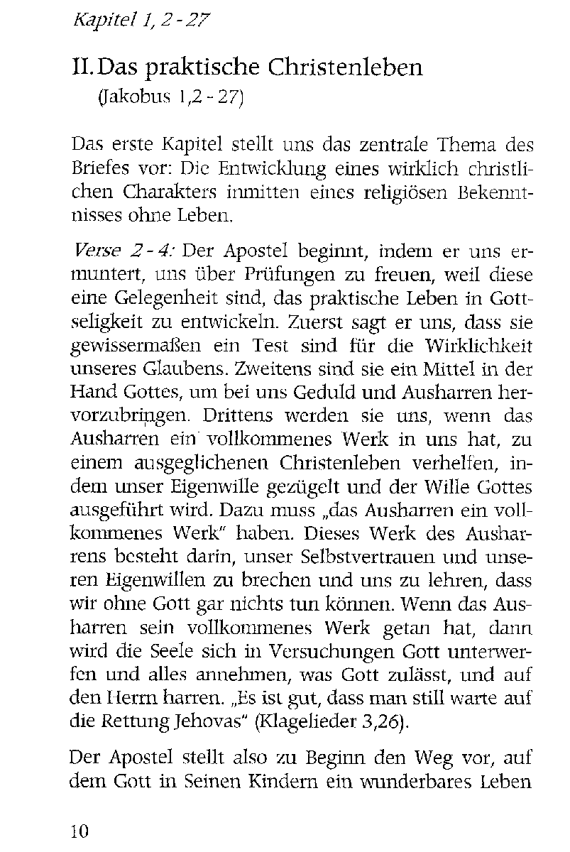 Eine kurz gefasste Auslegung des Jakobus-Briefes. Gut verständlich bringt Hamilton Smith die Botschaft dieses Briefes dem Leser nahe, der so tief in den Christen-Alltag hineingreift.