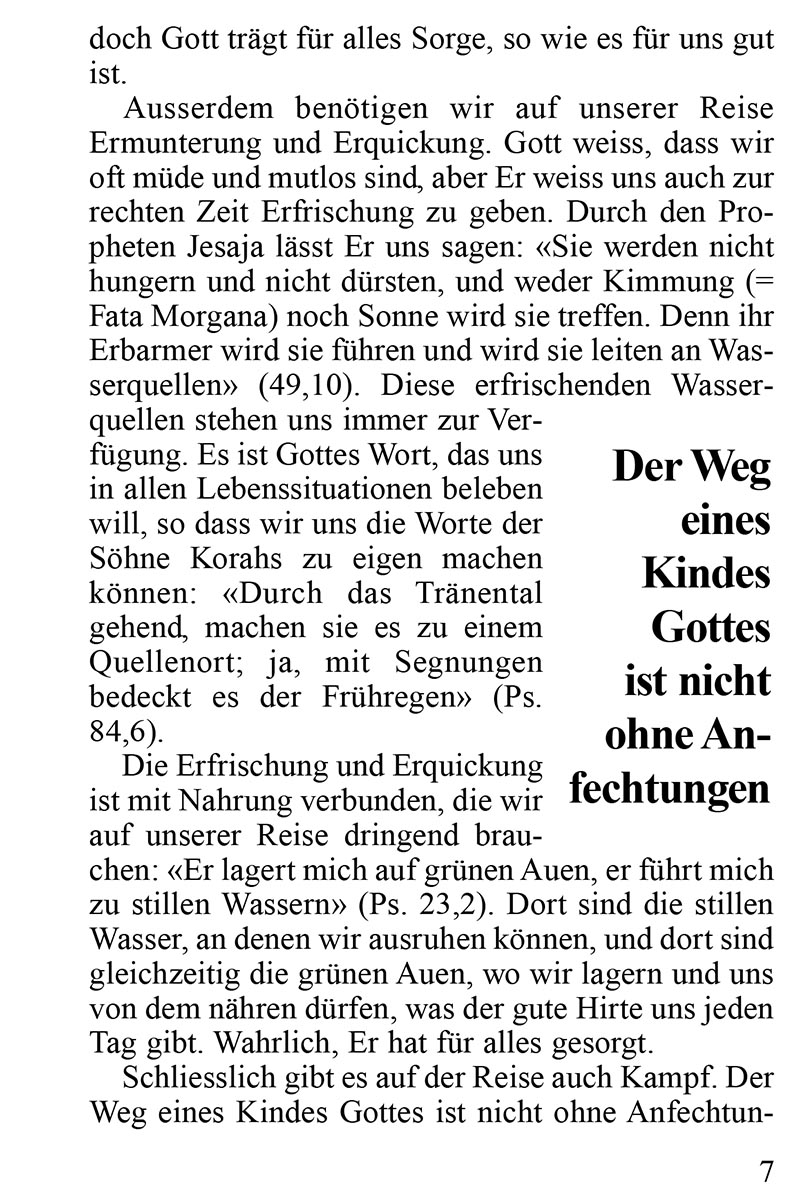 Das Leben von uns Christen gleicht einer Reise durch ein unbekanntes Land. Auf dieser «Lebensfahrt» tauchen Schwierigkeiten, Probleme und manchmal sogar Gefahren auf. Deshalb haben wir einen Führer nötig, der vor uns hergeht und den richtigen Weg zeigt. Glücklicherweise sind wir nicht allein unterwegs in dieser Welt. Der Herr Jesus selbst will unser Führer und Begleiter sein. Er wird uns sicher an das versprochene Ziel bringen.