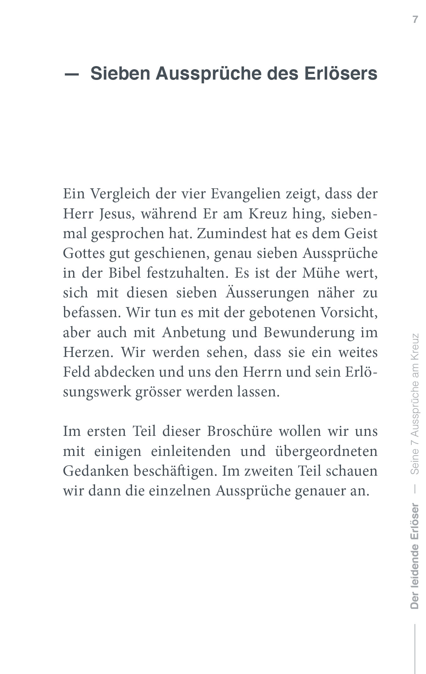 Diese Aussprüche lassen uns den Herrn Jesus und sein Erlösungswerk grösser werden. Wir staunen über Ihn und beten Ihn an.