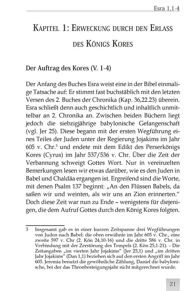 Diese gründliche Auslegung wird jedem Leser eine Hilfe sein, wertvolle und wichtige Belehrungen aus dem Buch Esra für sein Leben zu entnehmen.