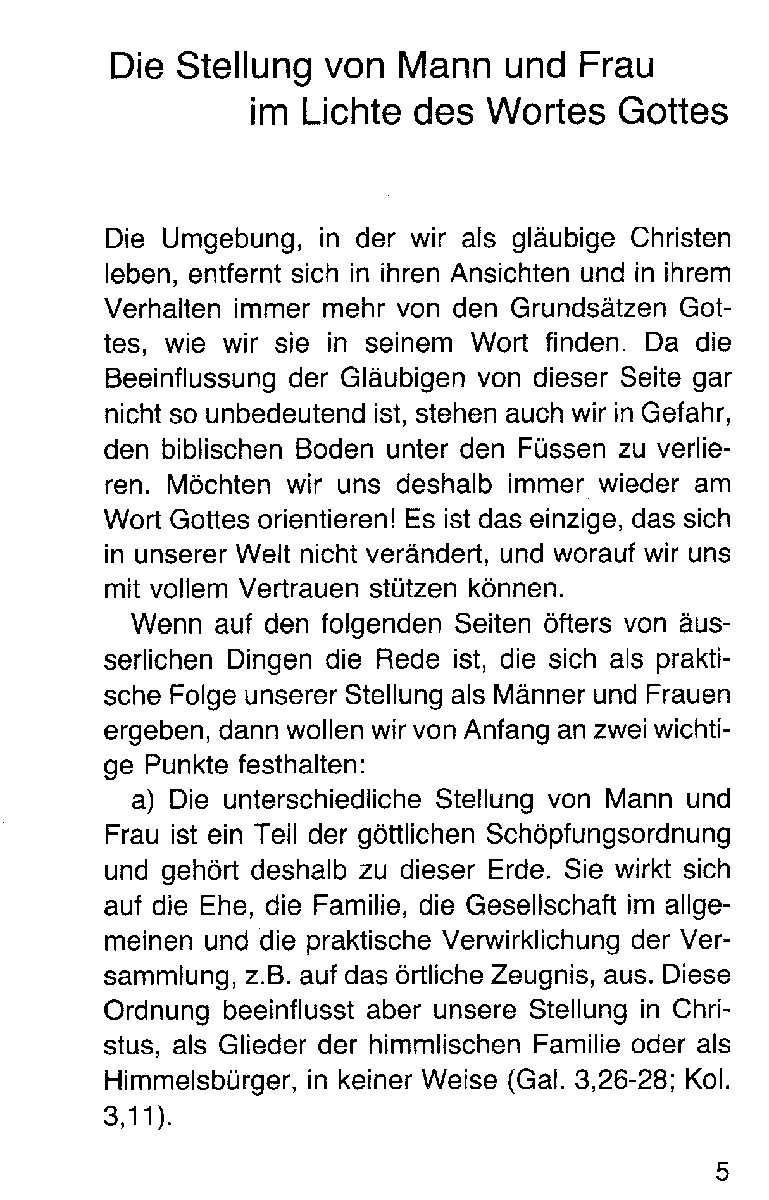 Ist es möglich, sich heute in einer Umgebung, die von Gott und seinen Grundsätzen nichts mehr wissen will, noch so als Männer und Frauen zu verhalten, wie Gott es uns in der Bibel zeigt? Ja, mit seiner Hilfe! Die Autoren erinnern nicht nur an die Ordnung Gottes, sie möchten auch Hilfestellung geben, um seine Grundsätze im praktischen Leben zu verwirklichen.