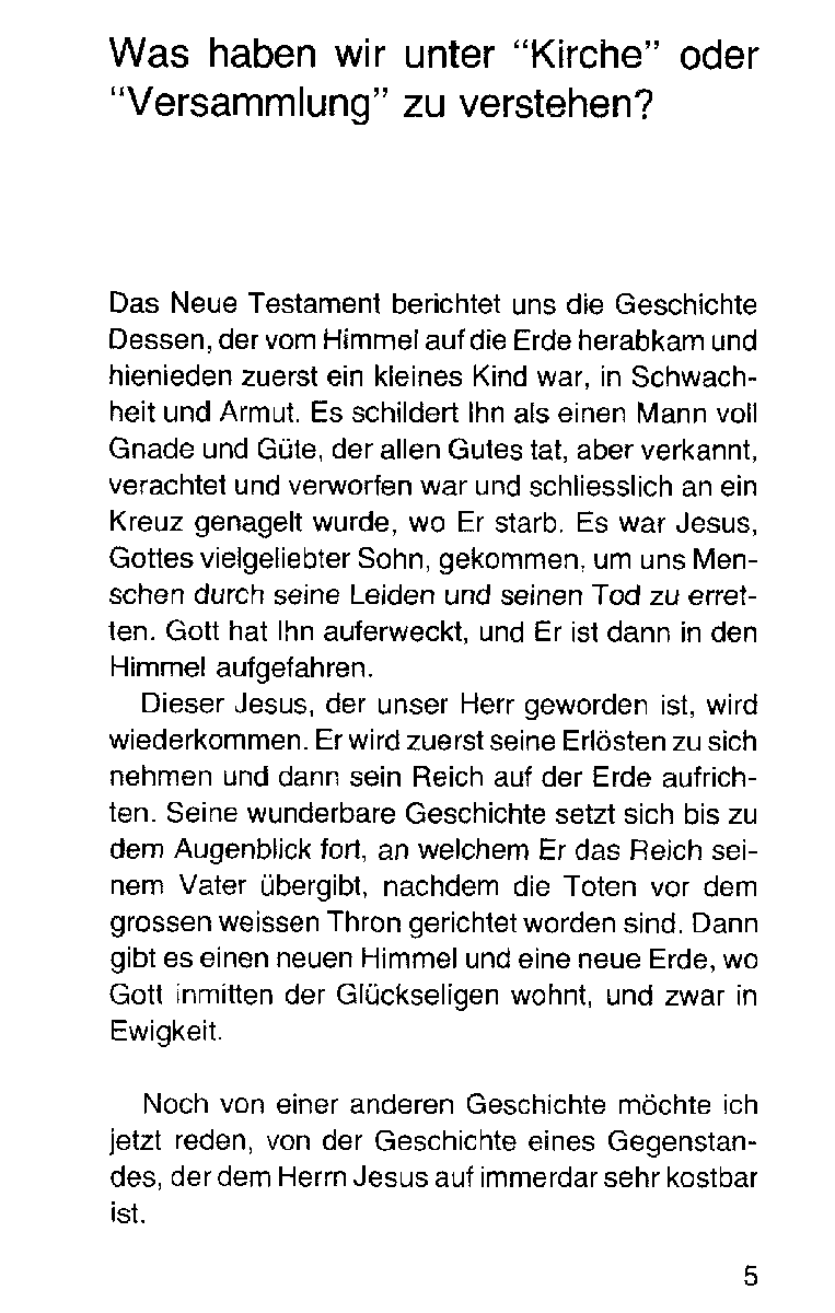 Was versteht die Bibel unter dem Begriff «Versammlung» oder «Gemeinde»? Wie und wo nahm sie ihren Anfang? Kann sie heute noch verwirklicht werden? Dieses Taschenbuch gibt die Antwort darauf.