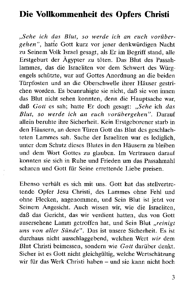 Dieses Heft behandelt die wichtige Frage der Heilsgewissheit des Gläubigen. Der Leser wird dahin geführt, nicht auf seine Gefühle und Erfahrungen zu blicken, sondern auf das vollkommene Werk des Herrn Jesus am Kreuz.