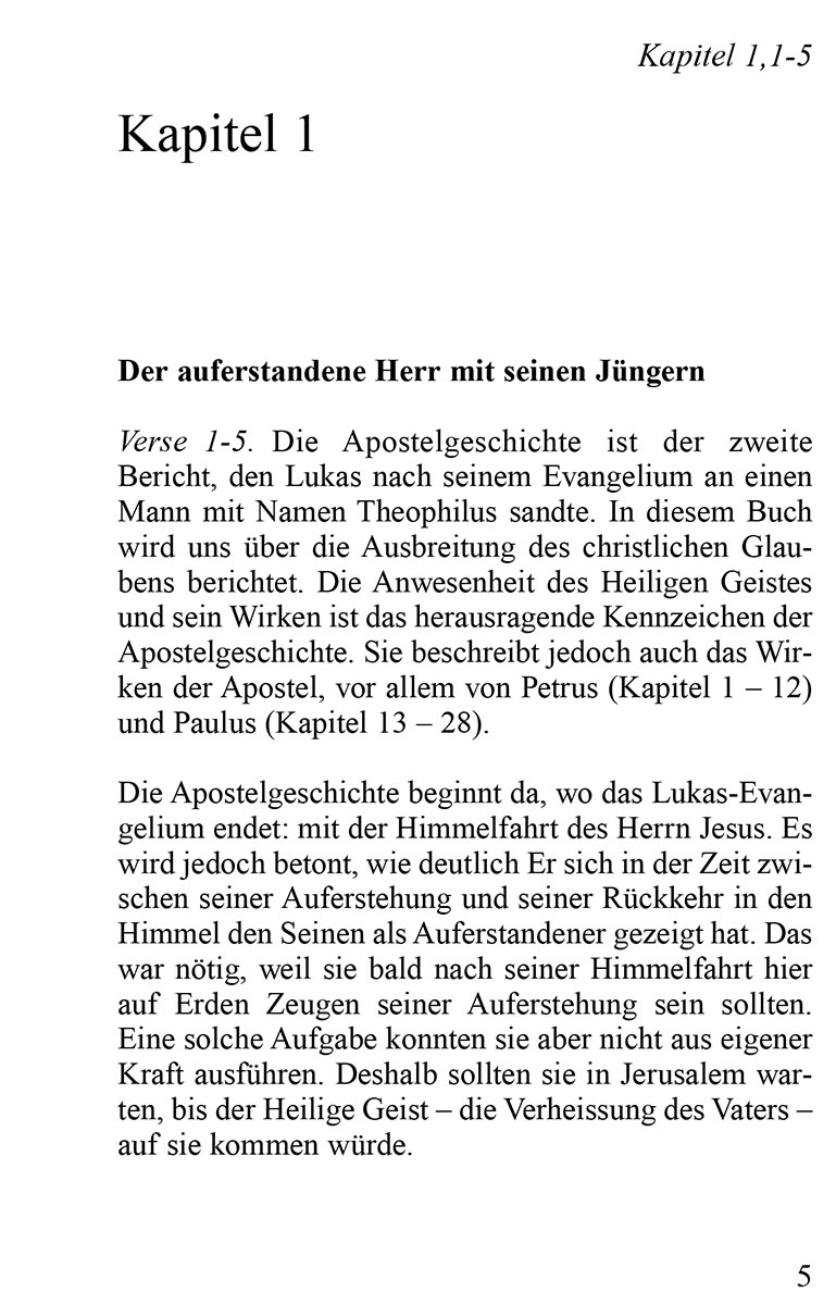 In der Nachahmung dieser Haltung der ersten Christen liegt für uns der grosse Wert dieses Buches. Das konsequent auszuleben, was wir aus dem Wort verstanden haben, ist christliche Praxis und wird zur Ehre des Herrn und zu unserem Segen sein.