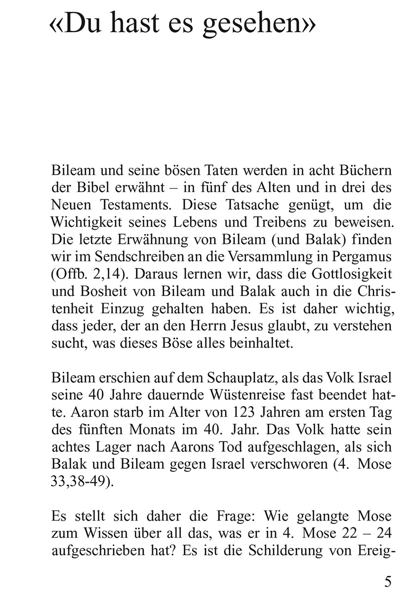 Die Worte und Wege Bileams tragen also einen prophetischen Charakter und haben damit eine Bedeutung für uns heute. Sollte nicht jeder, der an den Herrn Jesus glaubt, zu verstehen suchen, was Gott uns Christen durch diesen Mann mitteilen möchte? Ein genaues Studium dieser Kapitel aus dem 4. Buch Mose wird jedem helfen, sein eigenes Leben besser nach den Gedanken Gottes auszurichten.
