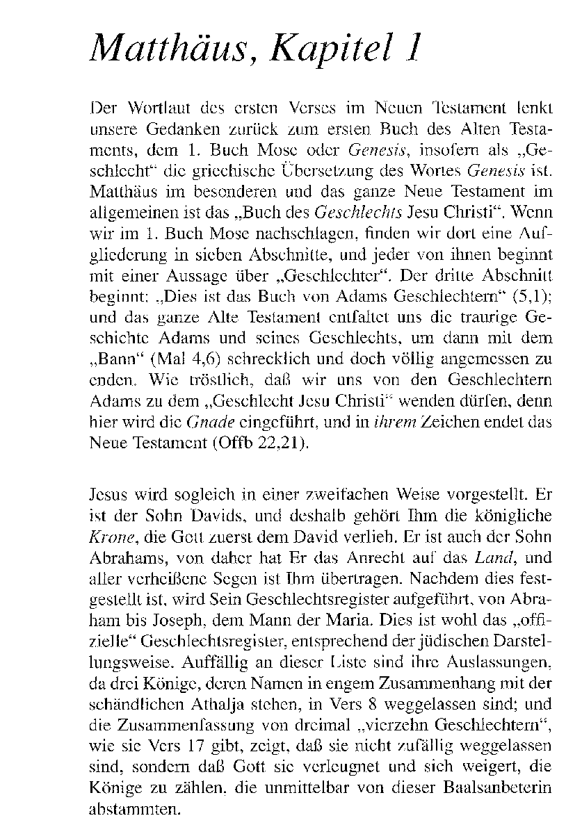 Kommentar zu den drei so genannten synoptischen Evangelien (Matthäus – Markus – Lukas), die einen Überblick über das Leben und die Wege von Jesus darstellen. Bei aller Übereinstimmung zeigen uns aber gerade die Unterschiede verschiedene Herrlichkeiten der Person und des Werkes unseres Heilands. Matthäus den Messias und König Israels, Markus den treuen Knecht und Propheten, Lukas den vollkommenen Sohn des Menschen.