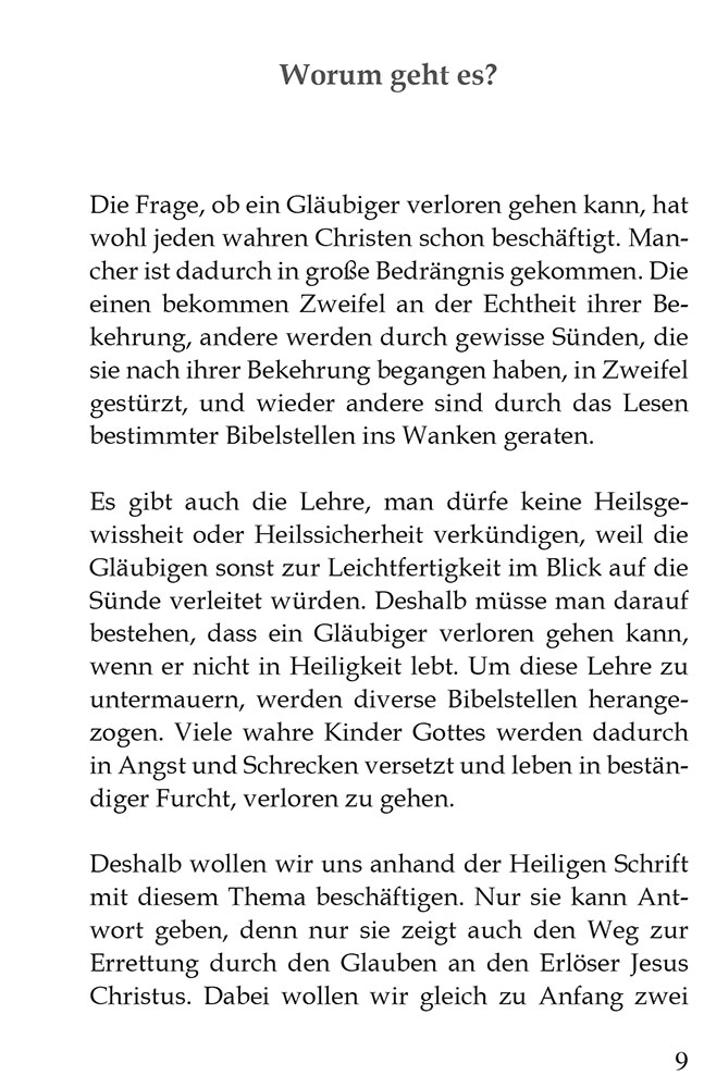 Die Frage, ob ein Gläubiger verloren gehen kann, hat wohl jeden Christen schon einmal beschäftigt. Sie ist einfach zu wichtig, als dass man sie beiseiteschieben könnte. In diesem Buch wird eine klare Antwort auf diese Frage gegeben.