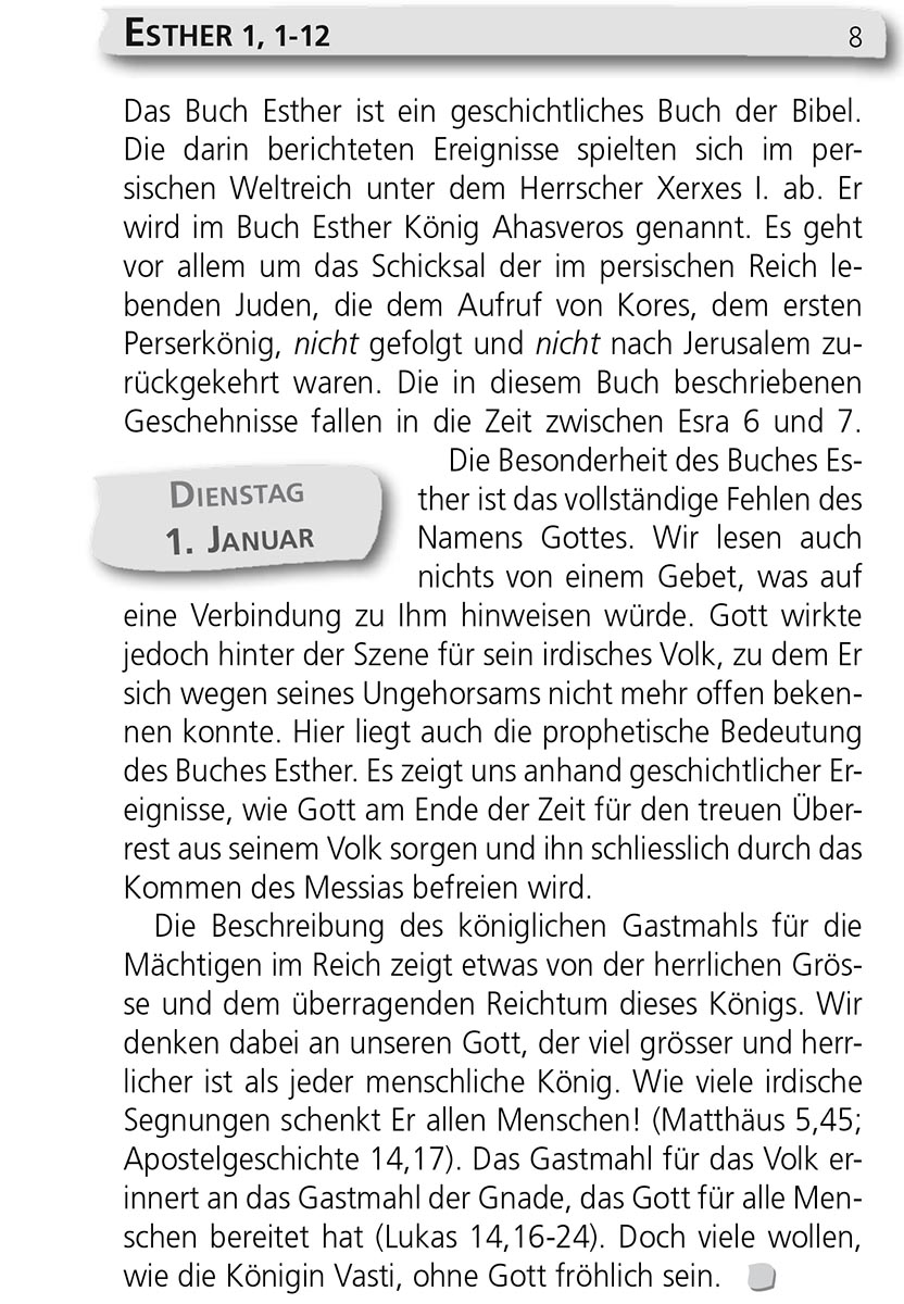 Das «tägliche Manna» ist eine Hilfe für das regelmässige Bibellesen. Es gibt jeden Tag einen Abschnitt aus der Bibel an und erklärt ihn kurz. In rund zehn Jahren liest man das Alte Testament einmal und das Neue Testament zweimal komplett durch.