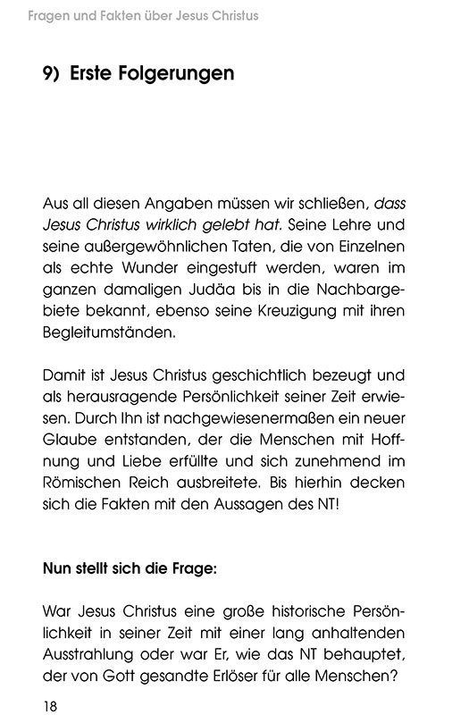 Was es mit Jesus Christus auf sich hat, ist zu wichtig, als dass man diesen Punkt einfach offen lassen könnte. Es geht darum, ob wir in unserem Leben auf der Suche nach Gott zum Ziel finden. Und da lautet die zentrale Frage: Ist Jesus Christus der große göttliche Erlöser oder nur eine schöne Legende?