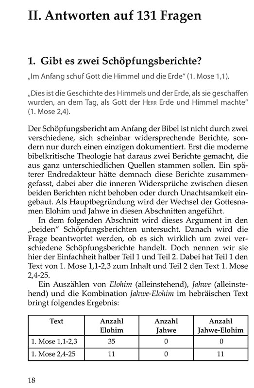 Dieses Taschenbuch ist eine gute Hilfe. Für Zweifler und für die, die ihnen helfen wollen. Aber auch für jeden, der das Wort Gottes liebt und Erklärungen für «schwierige Stellen» sucht.