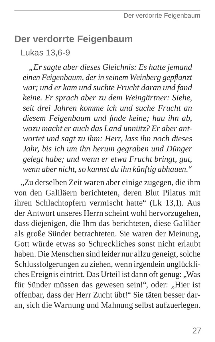 Bei der Betrachtung der Gleichnisse stellen sich die Fragen: «Was ist ein Gleichnis?», und: «Warum sprach unser Herr so oft in Gleichnissen?»