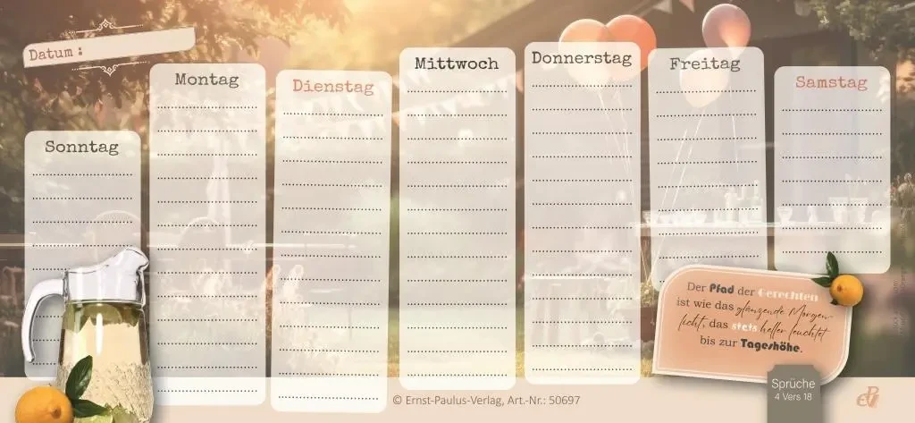 Mit wechselnden Bibelversen, die dir anhand von Gottes Zusagen den Tag erhellen möchten.